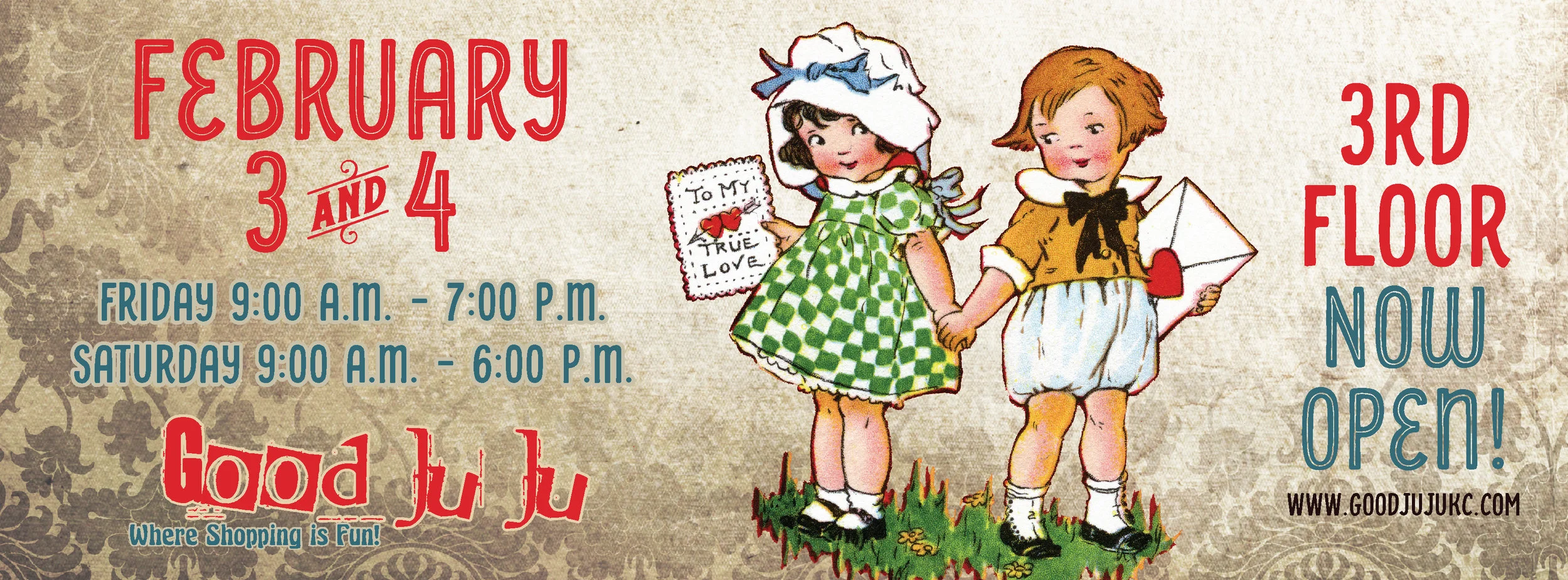 Friday, February 3rd and Saturday February 4th will be our most romantic vintage sale of the year (if you're into that sort of thing)! Join us for an almost undescribable First Friday's shopping event. Our antique store will have all 3 floors full of the best antique and vintage items in Kansas City's West Bottoms.